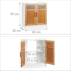 Relaxdays Wastafelonderkast Bamboe – Wastafelkast – Badkamerkast – Onderkast – Wit-bruin