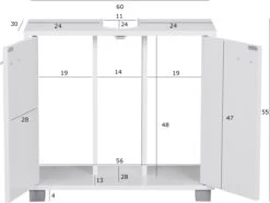 Mara Wastafel Onderkast – Badkamerkast – Badkamermeubel – Schuifdeuren – 60 X 30 X 61 Cm