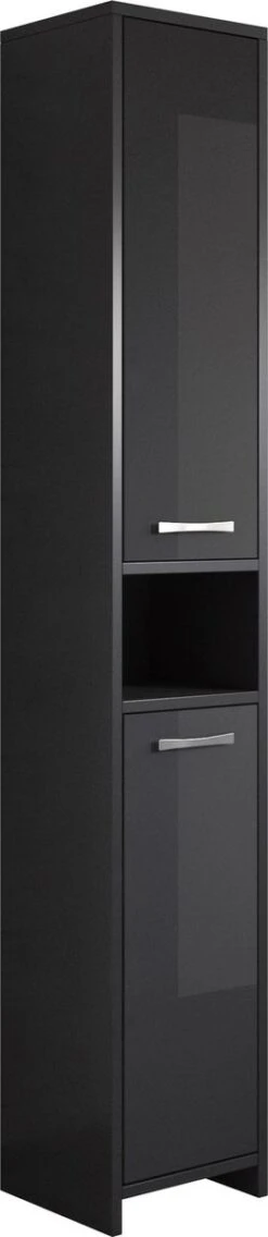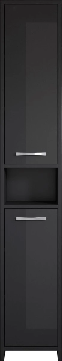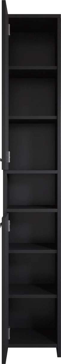 Staande badkamerkast Nemo is een stijlvolle kolomkast met meerdere opbergvakken voor extra opbergruimte in de badkamer. Vanwege zijn formaat is badkamerkast Nemo geschikt voor zowel grote als kleine badkamers. De kast is gemaakt van hoogwaardige kwaliteit spaanplaat voorzien van een fineerlaag. Montage is eenvoudig en al het benodigde montagemateriaal hiervoor is inbegrepen. De deuren van de kast kunnen zowel links als rechtsdraaiend gemonteerd worden. Deze kast wordt geleverd met pootjes waardoor deze niet aan de muur opgehangen hoeft te worden. De kast is uitgevoerd in zwart met hoogglans frontjes.