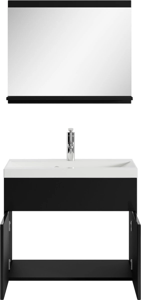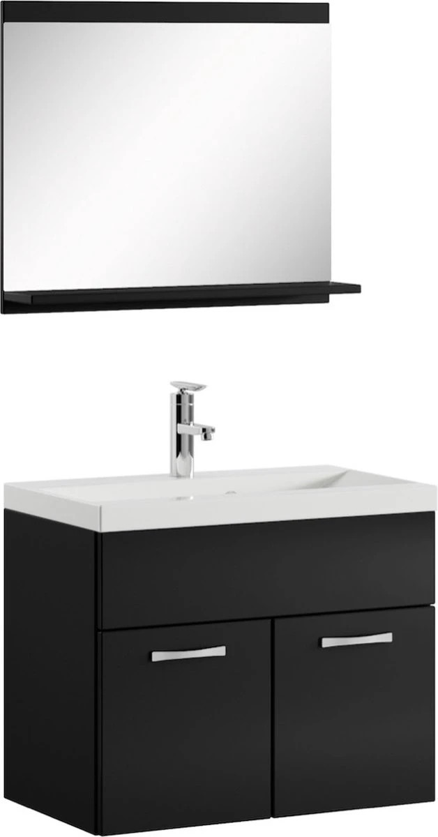 Badplaats Badkamermeubel Montreal Set 02 60 Cm X 35 Cm – Zwart Hoogglans – Badmeubel Met Spiegel