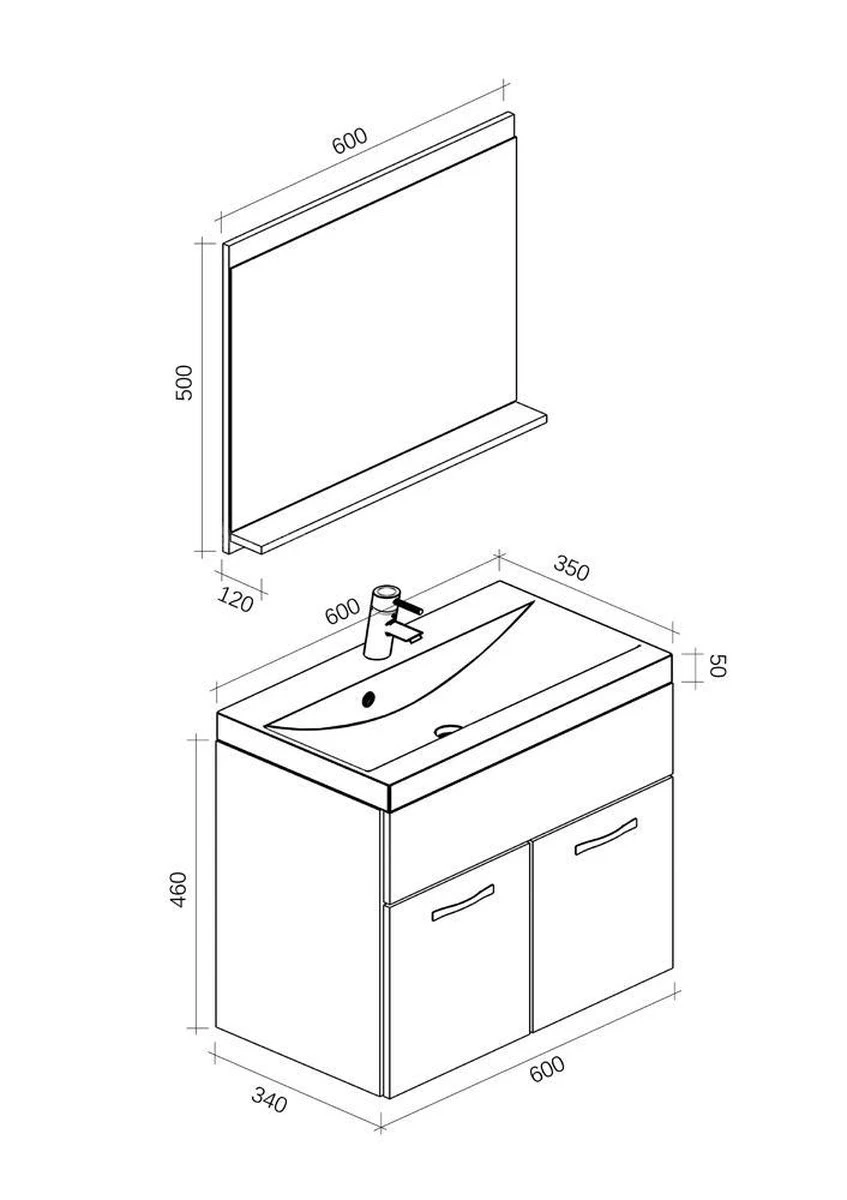 Elementen badmeubelset: Onderbouwkast, Planchet, Spiegel, Wastafel
