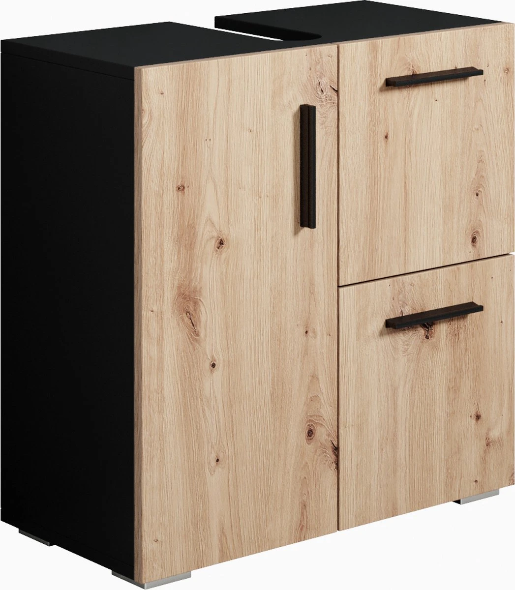 Badplaats Wastafel Onderkast Mars 60 Cm X 30 Cm X 60 Cm – Zwart Met Eiken – Badkamerkast – Staand Wastafelmeubel