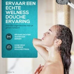 Waterbesparende Douchekop – Hoofddouche – Regendouche – Met ECO STOP Knop – 5 Standen – ABS – Zwart