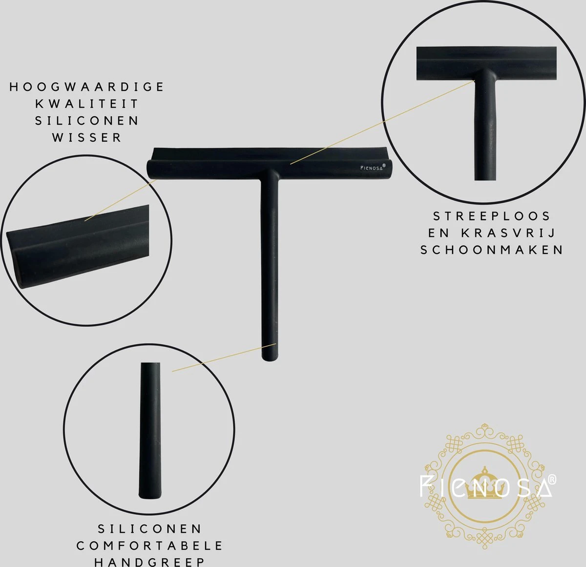 Met de stijlvolle Fienosa zwarte douchewisser van zacht silliconen heb je gegarandeerd een streeploos schone badkamer.