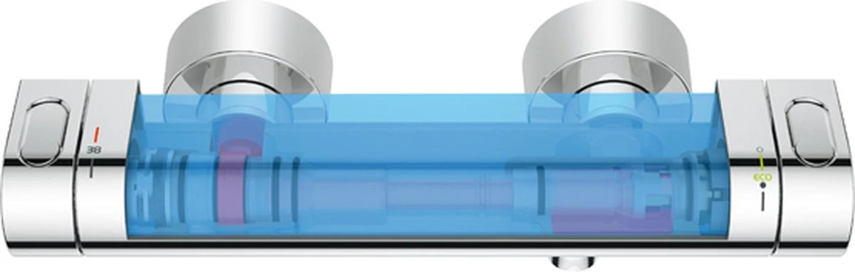- Met GROHE EcoJoy® bespaar je tot wel 50% van het verbruik (indien 100% van de functionaliteit wordt benut)