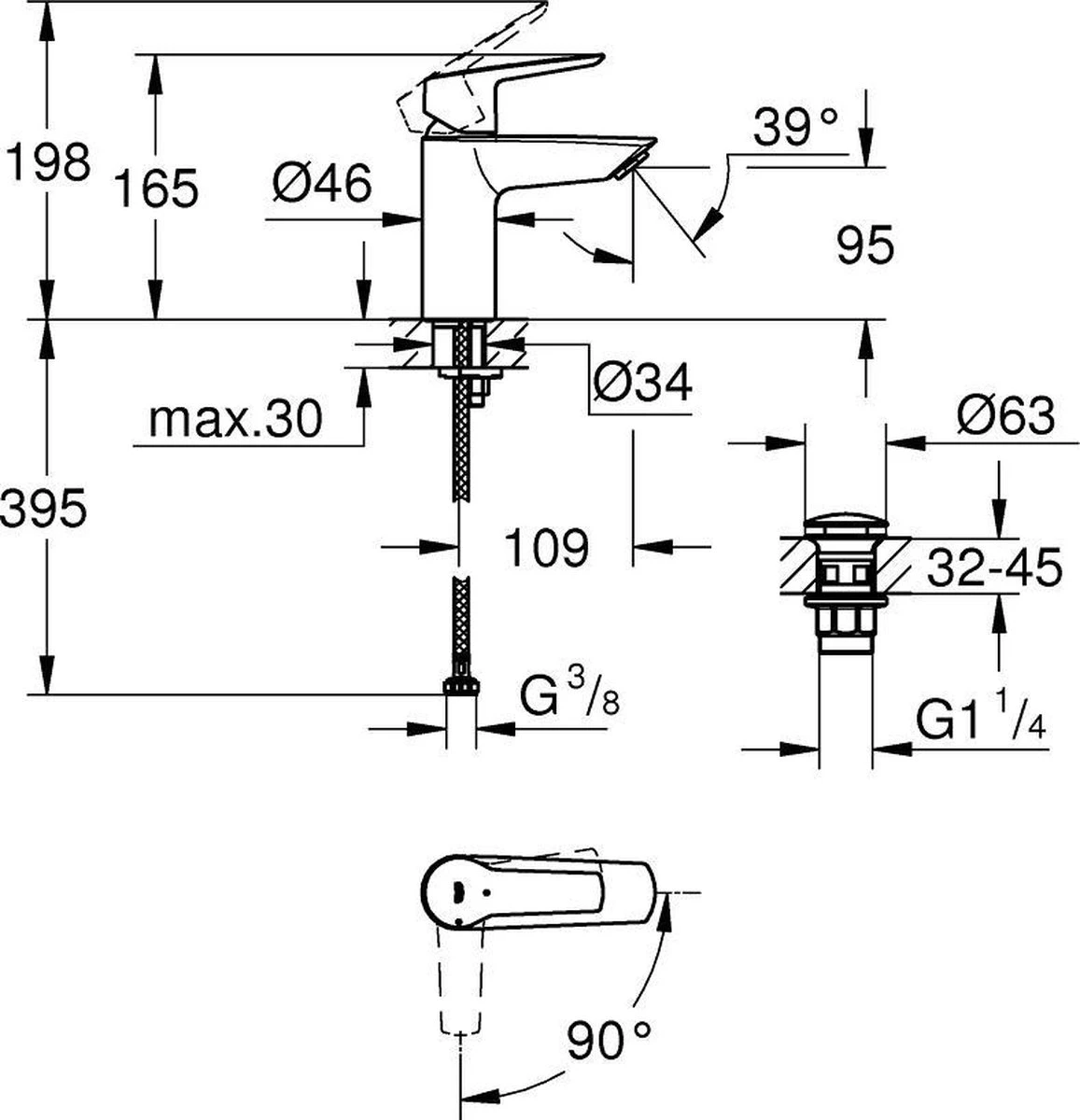 Je verspilt ook geen energie, omdat er alleen koud water uit de middelste hendelpositie stroomt. GROHE EcoJoy beperkt je waterverbruik tot 5,7 l/min zonder dat je daarbij inlevert qua prestaties. GROHE Zero geïsoleerde binnenwaterwegen zorgen ervoor dat het water in de kraan lood- en nikkelvrij is. En dankzij het GROHE QuickFix installatiesysteem met 3-in-1 tool en flexibele aansluitslangen kan je het binnen enkele minuten monteren. Het meegeleverde 3-in-1 tool draait de moer vast voor bladmontage, trekt de verbindingsslangen aan en verwijdert en bevestigt de beluchter als er onderhoud nodig is. Het is afgewerkt in de prachtige, slijtvaste GROHE StarLight chroom afwerking. Deze badkamerkraan zal er hierdoor jarenlang perfect uit blijven zien.