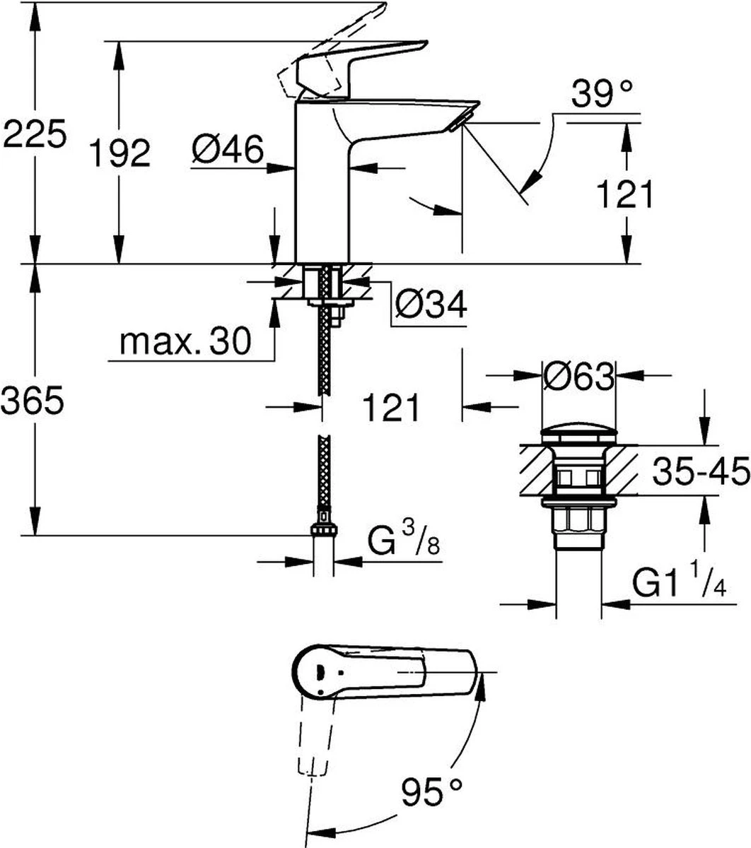 Energieverspilling wordt ook tegengegaan want uit de middelste hendelpositie stroomt enkel koud water. GROHE EcoJoy beperkt je waterverbruik tot 5,7 l/min zonder dat je daarbij inlevert qua prestaties. GROHE Zero geïsoleerde binnenwaterwegen zorgen ervoor dat het water in de kraan lood- en nikkelvrij is. En dankzij het GROHE QuickFix installatiesysteem met 3-in-1 tool en flexibele aansluitslangen kan je het binnen enkele minuten monteren. Het meegeleverde 3-in-1 tool draait de moer vast voor bladmontage, trekt de verbindingsslangen aan en verwijdert en bevestigt de beluchter als er onderhoud nodig is. Het is afgewerkt in de prachtige, slijtvaste GROHE StarLight chroom afwerking. Deze badkamerkraan zal er hierdoor jarenlang perfect uit blijven zien.