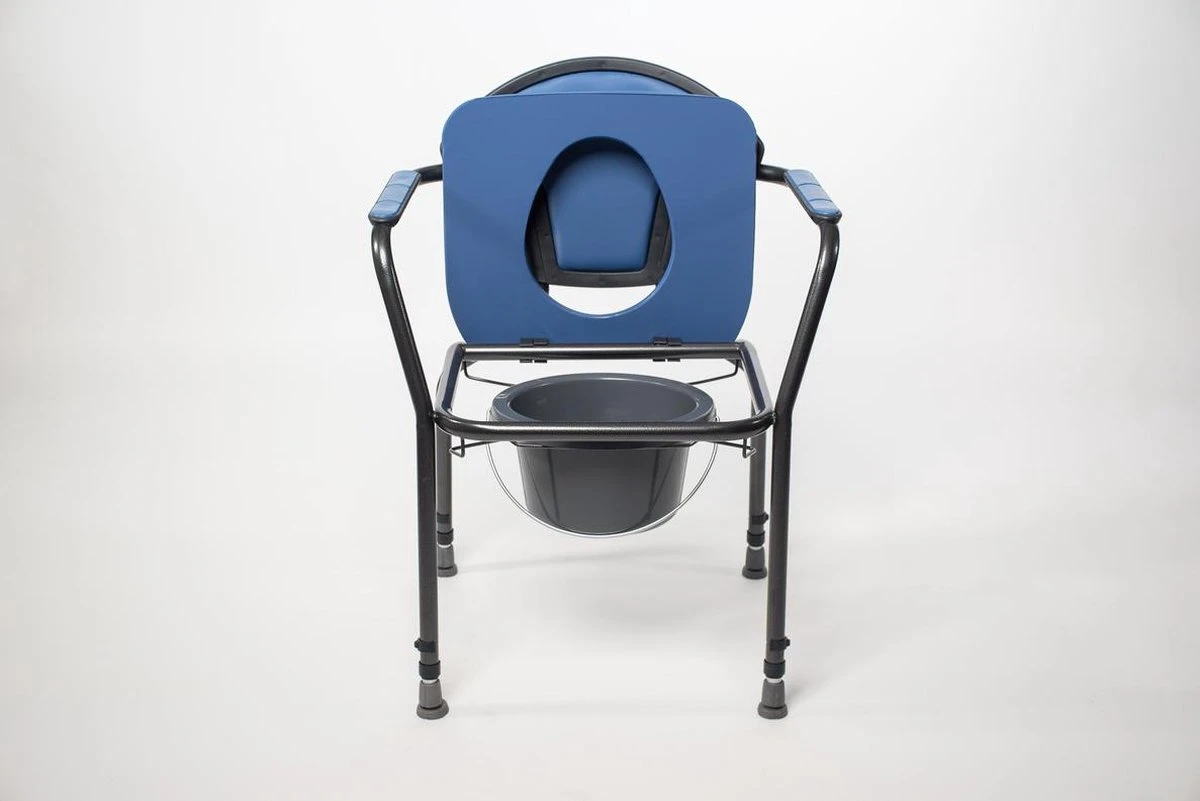 Zoekt u een toiletstoel voor gebruik in uw slaapkamer of woonkamer? Deze stoel is in hoogte verstelbaar en heeft een waterafstotende bekleding. De stoel heeft een metalen frame en twee sterke leuningen voor een goede ondersteuning. De toiletstoel is ruim en comfortabel en heeft een eenvoudig te verwijderen deksel in de zitting. Wanneer u de stoel niet gebruikt ziet u hierdoor de opening niet en kunt u hem als normale stoel gebruiken. De stoel wordt geleverd met een emmer met handvat. Door de zitting omhoog te klappen kunt u de emmer aan de bovenzijde verwijderen om hem te legen en schoon te maken. Het maximale gebruikersgewicht bedraagt 130 kg. Verkrijgbaar in de kleur blauw. Dit is een hygiene product en kan niet worden geruild.