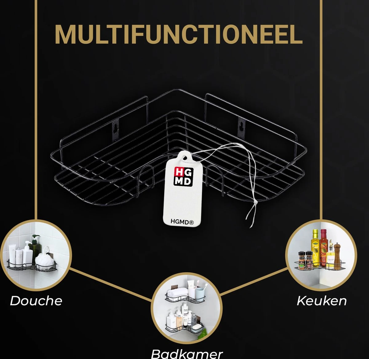 HGMD® Doucherek Zonder Boren – 1 Stuk – Zwart – Zelfklevend Doucherek –Badkamerrek – Badrek – Keukenrek – Doucherek Hangend – Badkamer Accessoires – Kruidenrek