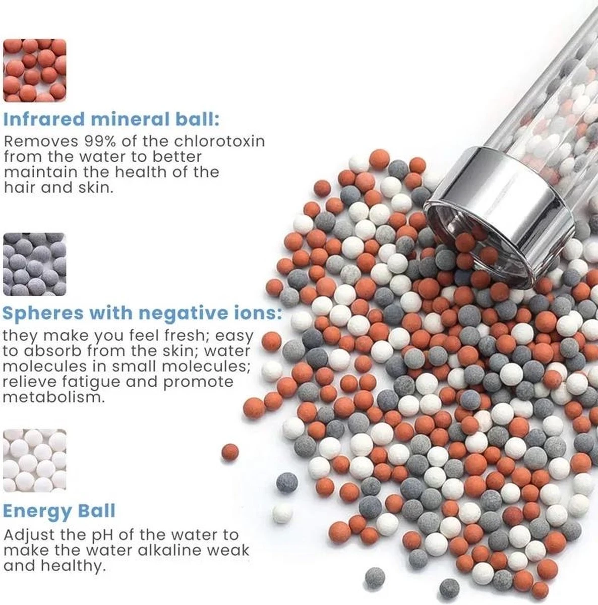 Deze douchekop bevat negatief geladen mineraalstenen die zorgen voor een aangepaste PH-waarde en laag alkaline gehalte in het water. Dit is dus erg gunstig voor de gezondheid.