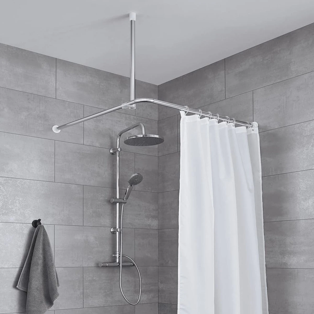 Deze chroomkleurige, 180×200 cm grote, aluminium, telescopische douchegordijnstang van Kleine Wolke heeft 3 maten en een fraai design. Hij is hygiënisch, onderhoudsvriendelijk en universeel toepasbaar.