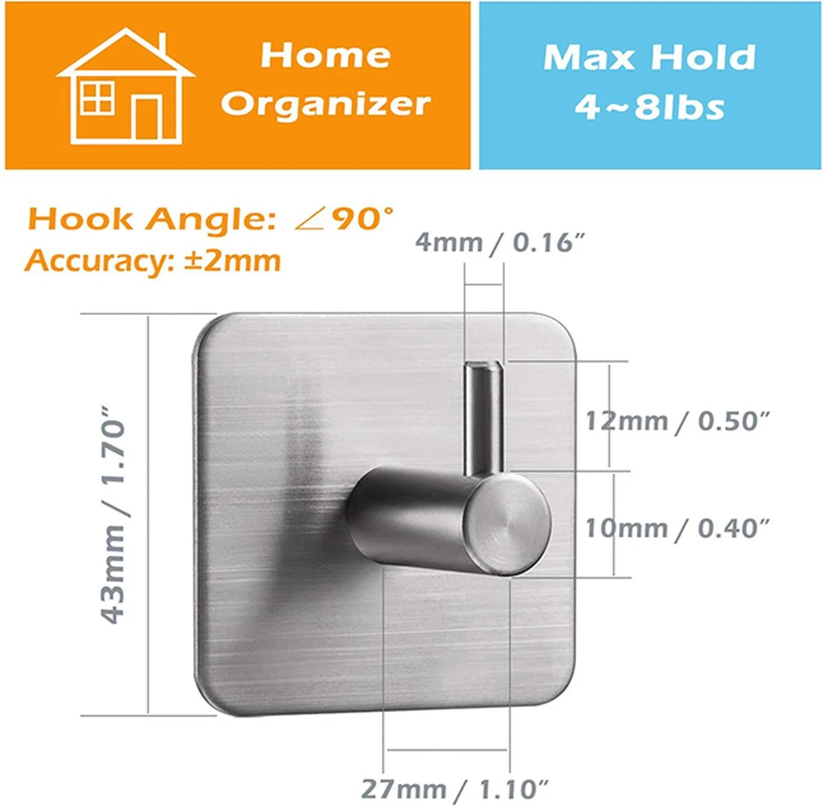 Onze roestvrijstalen zelfklevende haken zijn perfect voor het opbergen van handdoeken en accessoires in badkamer en keuken. Deze set van 4 haken is gemaakt van hoogwaardig roestvrij staal en voorzien van een sterke 3Mâ„¢ Plakstrip, waardoor ze blijvend vast blijven zitten op elk glad oppervlak. Met een maximale draaggewicht van 5kg zijn deze haken sterk genoeg voor het ophangen van zware handdoeken en andere accessoires. Deze haken zijn ook waterdicht en geschikt voor gebruik in vochtige omgevingen. Dankzij hun minimalistische ontwerp passen ze in elk interieur. Koop nu onze ultra-sterke roestvrijstalen zelfklevende haken en voeg een stijlvolle en functionele aanvulling toe aan uw badkamer- en keukeninterieur.