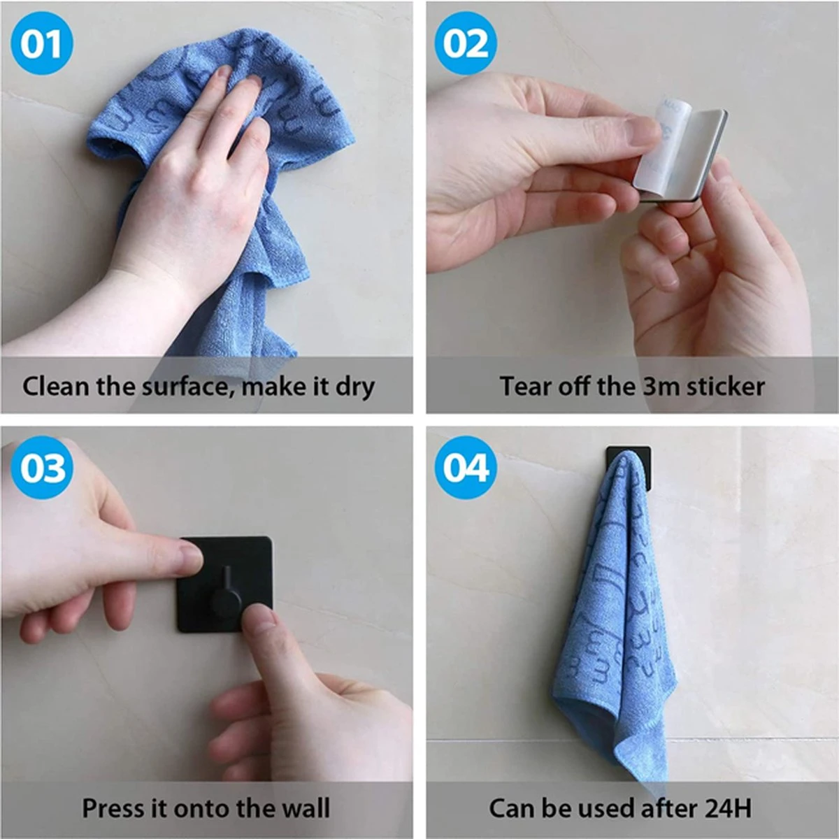 - Plaats de haak op de ondergrond en druk deze stevig aan