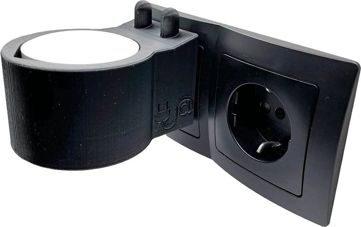 Door het unieke design kan de houder direct in het stopcontact worden gedrukt en is er geen gereedschap nodig om deze op te hangen.