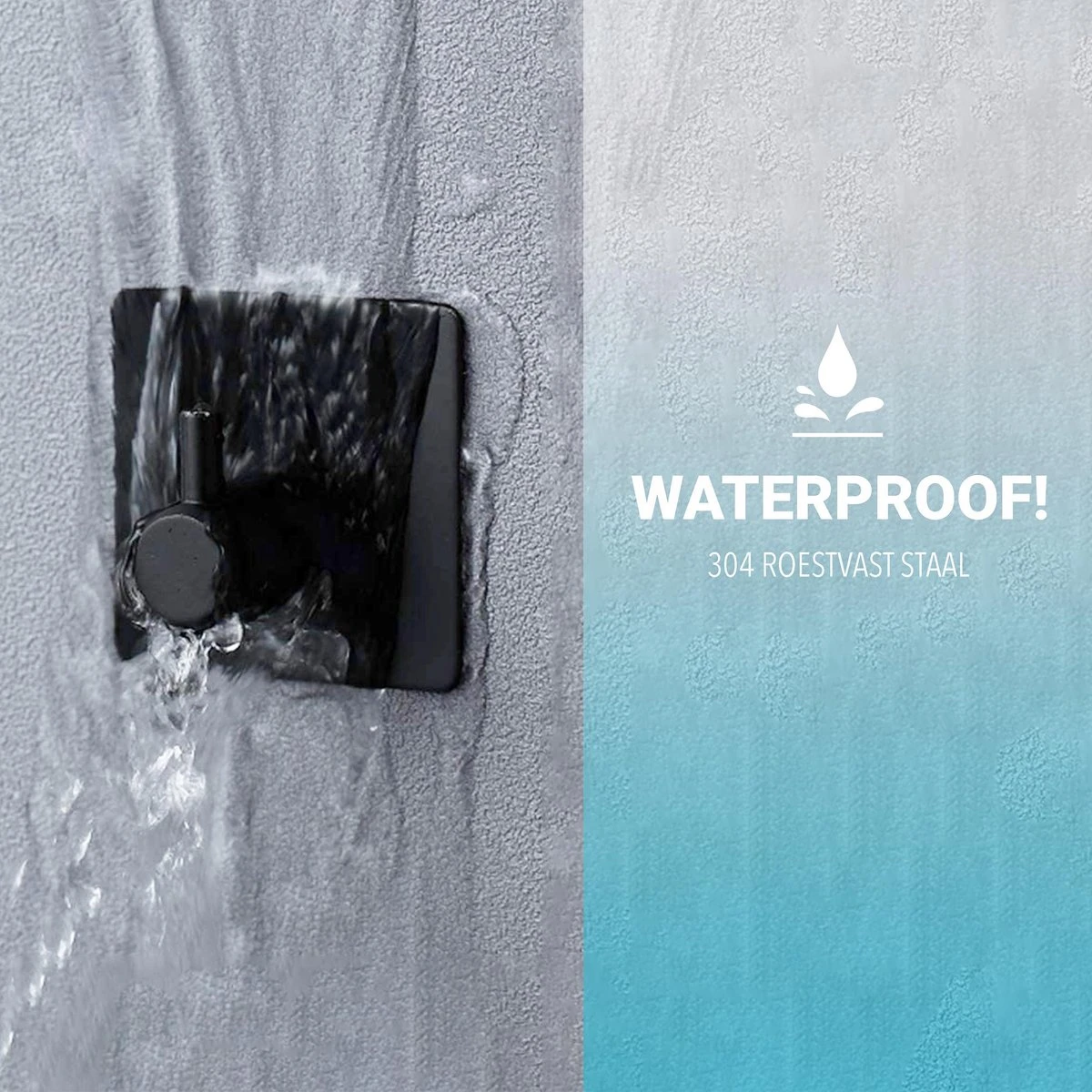 Qitch & Quisine Handdoekhaakjes – Set Van 3 Zwarte Haakjes – Zelfklevend – Waterbestendig – RVS