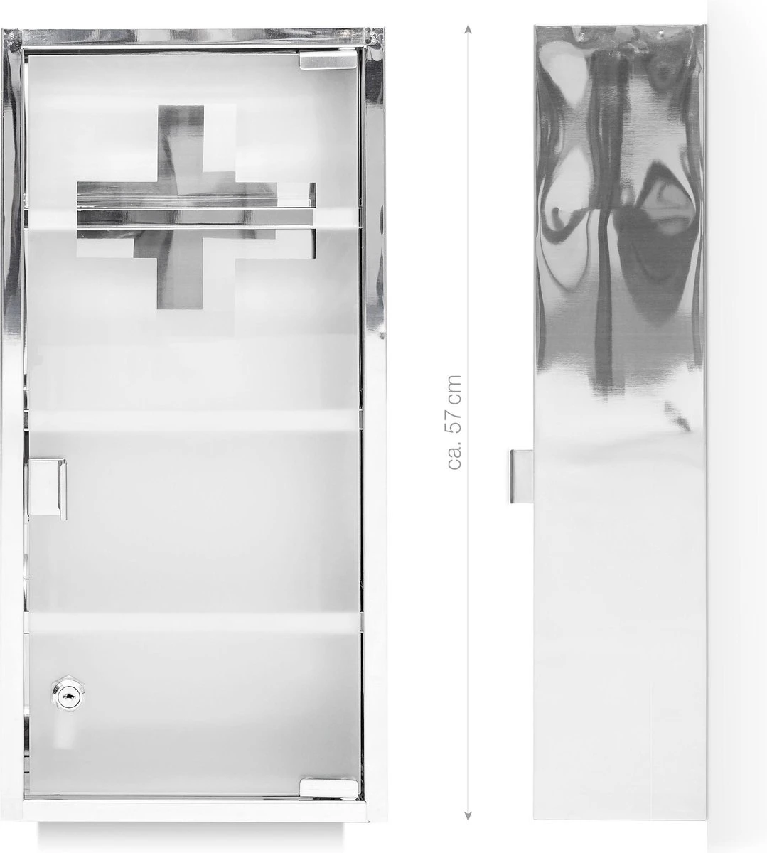 Het glanzende metaal ziet er in combinatie met het glas modern en stijlvol uit. De medicamentenkast staat mooi in de badkamer en valt niet erg op. Door het transparante kruis op de deur kun je de inhoud zien en het is tegelijkertijd een mooi deco-element.