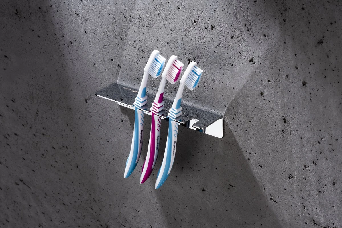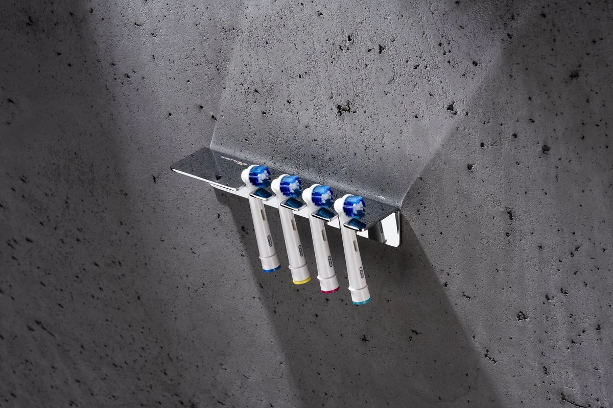 MULTI-FUNCTIONEEL PLATEAU – Naast het ophangen van tandenborstels kunt u bijvoorbeeld ook uw tandpasta of uw elektrische tandenborstel op de tandenborstelhouder neerzetten.