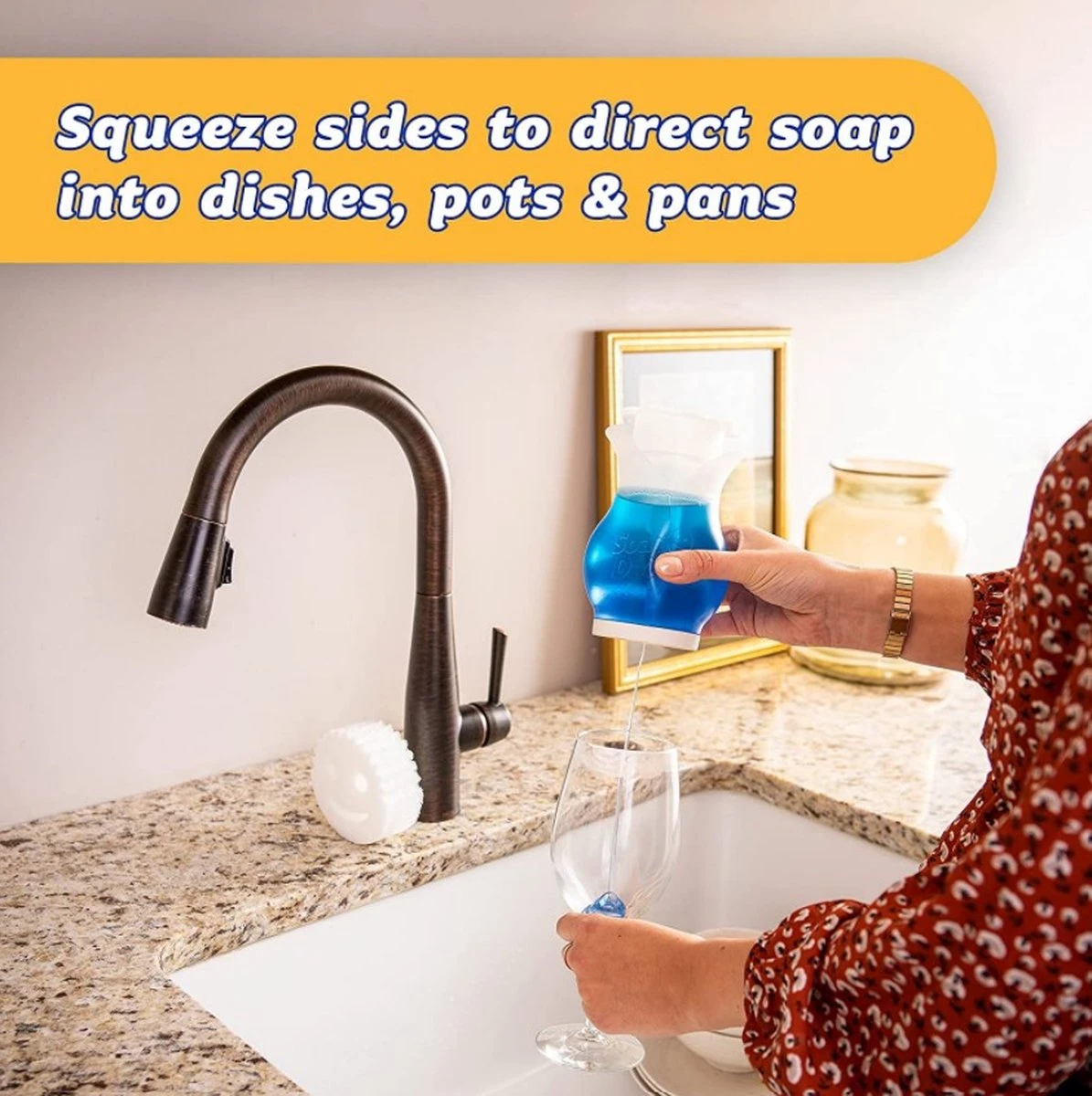 Met dit handige combinatie pakket van de transparante Scrub Daddy zeepdispenser plus de Daddy Wonder WashUp afwasmiddel maakt u uw vaat, uw handen of andere oppervlakken op een eenvoudige manier schoon. De zeepdispenser heeft een dubbele werking. Enerzijds kunt u de bovenkant gebruiken om direct een juiste hoeveelheid zeep op uw spons aan te brengen. Anderzijds kunt u ook zeep uit de onderkant laten komen door de zijkanten van de tube in te drukken. Zo spuit u de zeep direct op de schoon te maken oppervlakken.