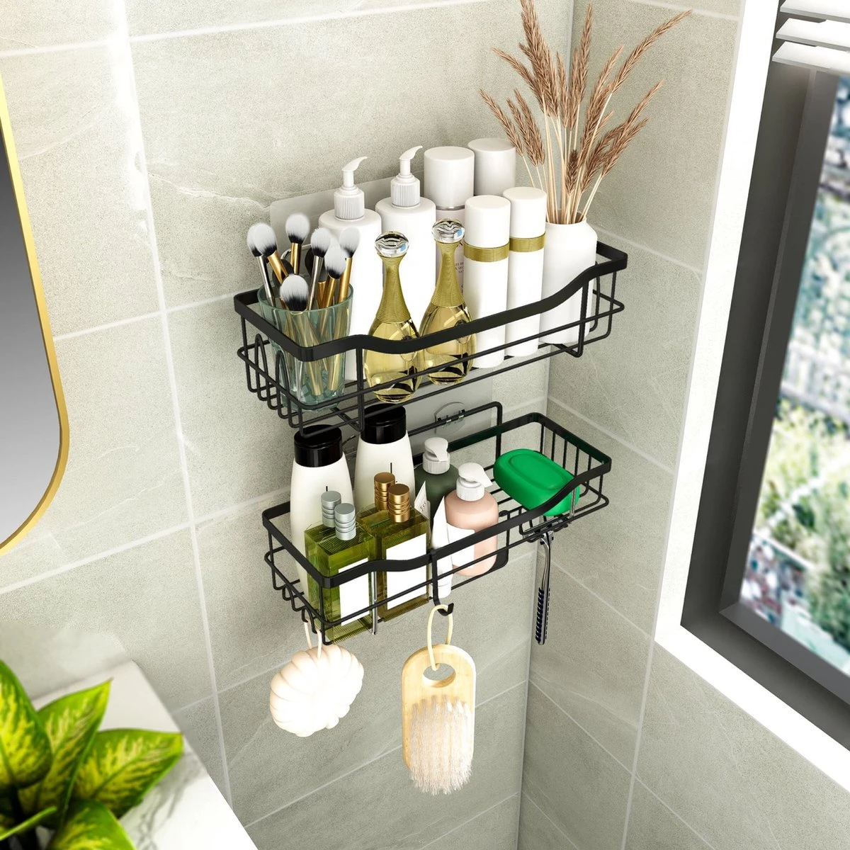 De rekjes komen in twee verschillende formaten. Je hebt natuurlijk de keuze beiden in de badkamer te hangen voor alle shampoos en conditioners, maar ze zijn ook ideaal voor je kruiden collectie in de keuken, voor de geurstokjes in het toilet of zelfs in de kinderkamer voor de pluizige vriendjes van je zoon of dochter. Je kunt het zelf zo gek of normaal maken als je wilt! Je vindt overigens ook nog 3 losse ophanghaken in de verpakking.