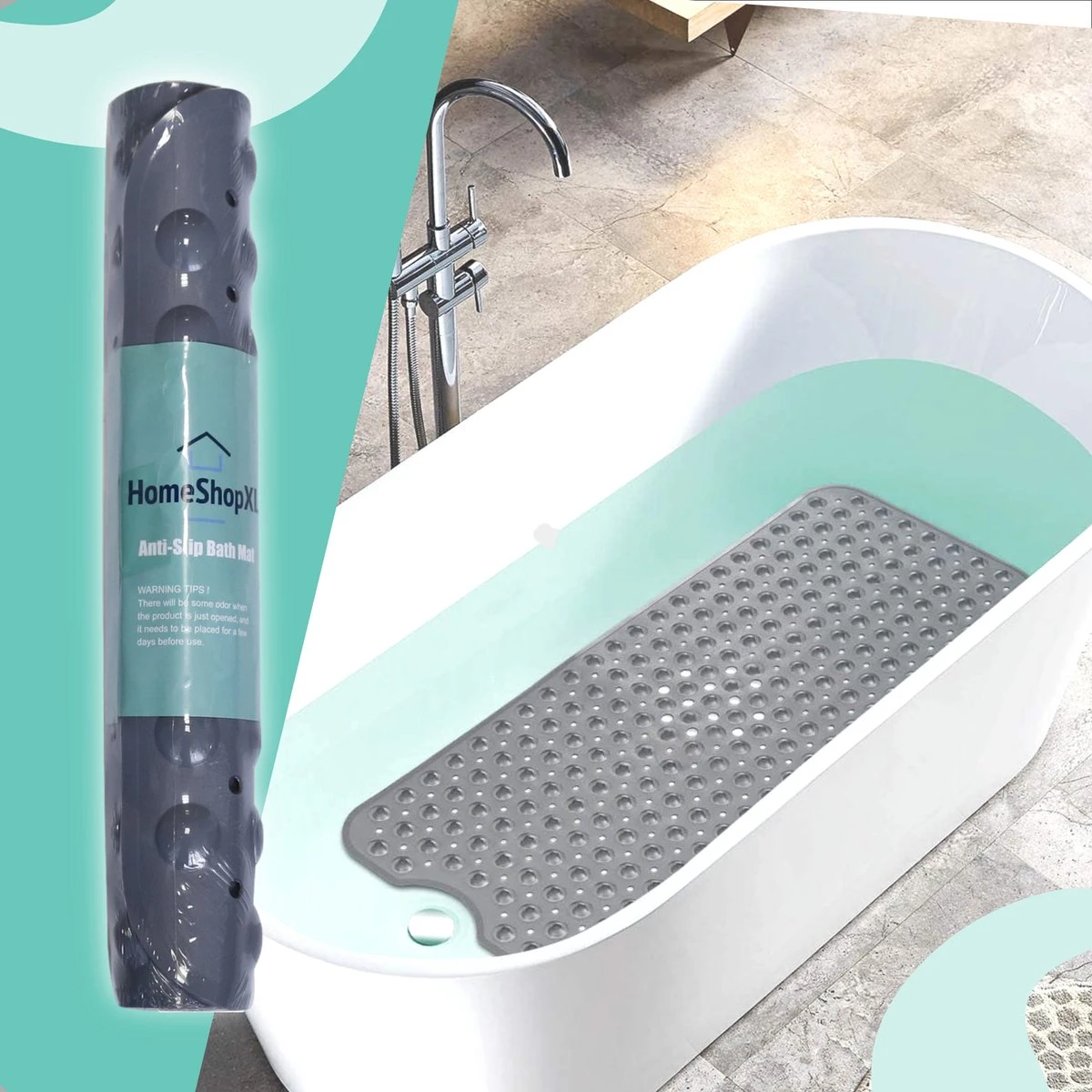 The Original – Badmat Antislip – Grijs – 100x40cm – Antislipmat Douchemat Voor Bad & Douche – Anti Slip Mat Met Zuignappen