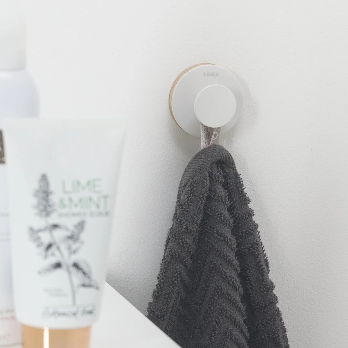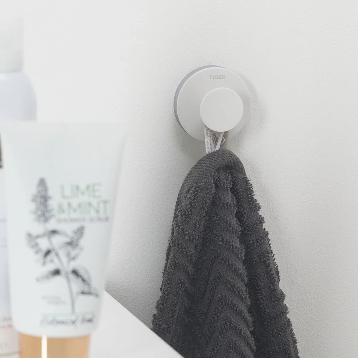 De haak groot uit de Urban serie van Tiger is uitgevoerd in de kleur mat wit en wordt geleverd met twee decor ringen. De decor ringen, in de kleur licht eiken en grijs, maken het mogelijk een subtiel kleuraccent toe te voegen. Het is ook mogelijk de haak zonder de decor ring te monteren waardoor het zeer eenvoudig is om het product aan de gewenste stijl aan te passen. Bij de montage van het artikel wordt gebruik gemaakt van een muurplaatje waardoor de bijgeleverde bevestigingsmaterialen uit het zicht verdwijnen. De Urban serie bevat tevens een groot aantal aanvullende accessoires voor de badkamer en toiletruimte. Alle in dezelfde stijl. De haak groot is tevens geschikt voor montage met TigerFix type 1, waarmee accessoires snel en eenvoudig op een gladde, harde ondergrond te bevestigen zijn door middel van een gepatenteerd lijmsysteem. Boren is niet noodzakelijk en de accessoires zijn eenvoudig te verwijderen zonder dat er resten op de ondergrond achterblijven. TigerFix is apart verkrijgbaar.
