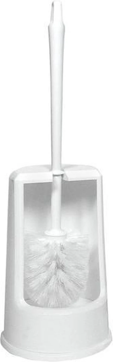 Toiletborstel / wc-borstel met houder in de kleur wit. Handig voor in de badkamer of toiletruimte. Materiaal: kunststof. Lengte: 27 cm. Kleur: wit.