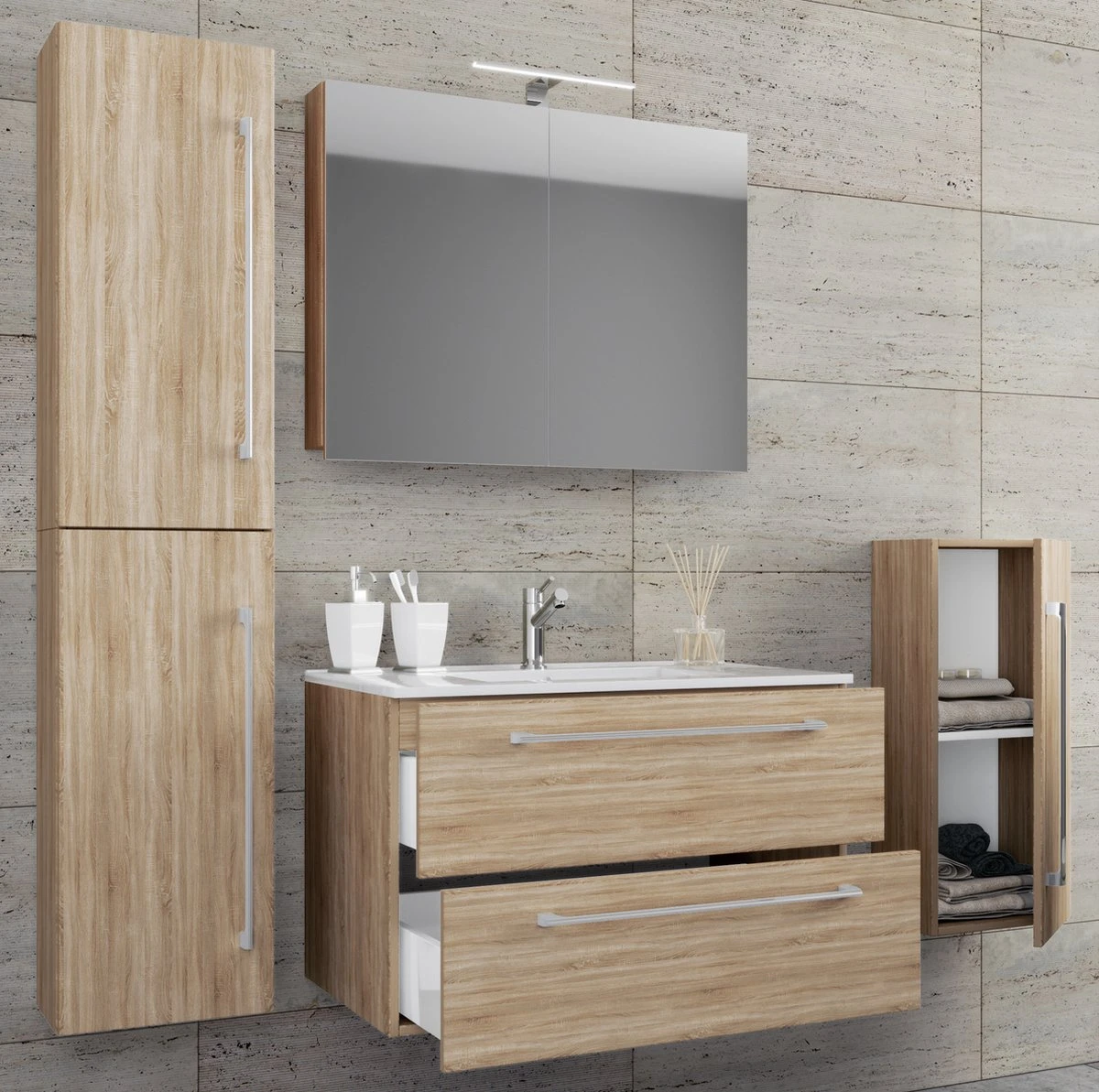 VCM 5-delige Wastafel Badkamermeubelset Wastafel Badinos Lade SC 5-delige Wastafel Badkamermeubelset Wastafel Badinos Lade SC