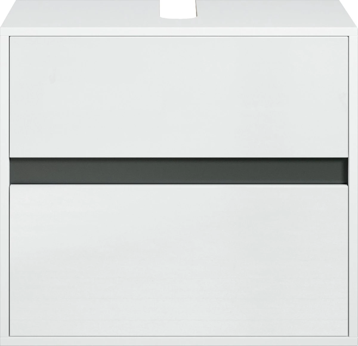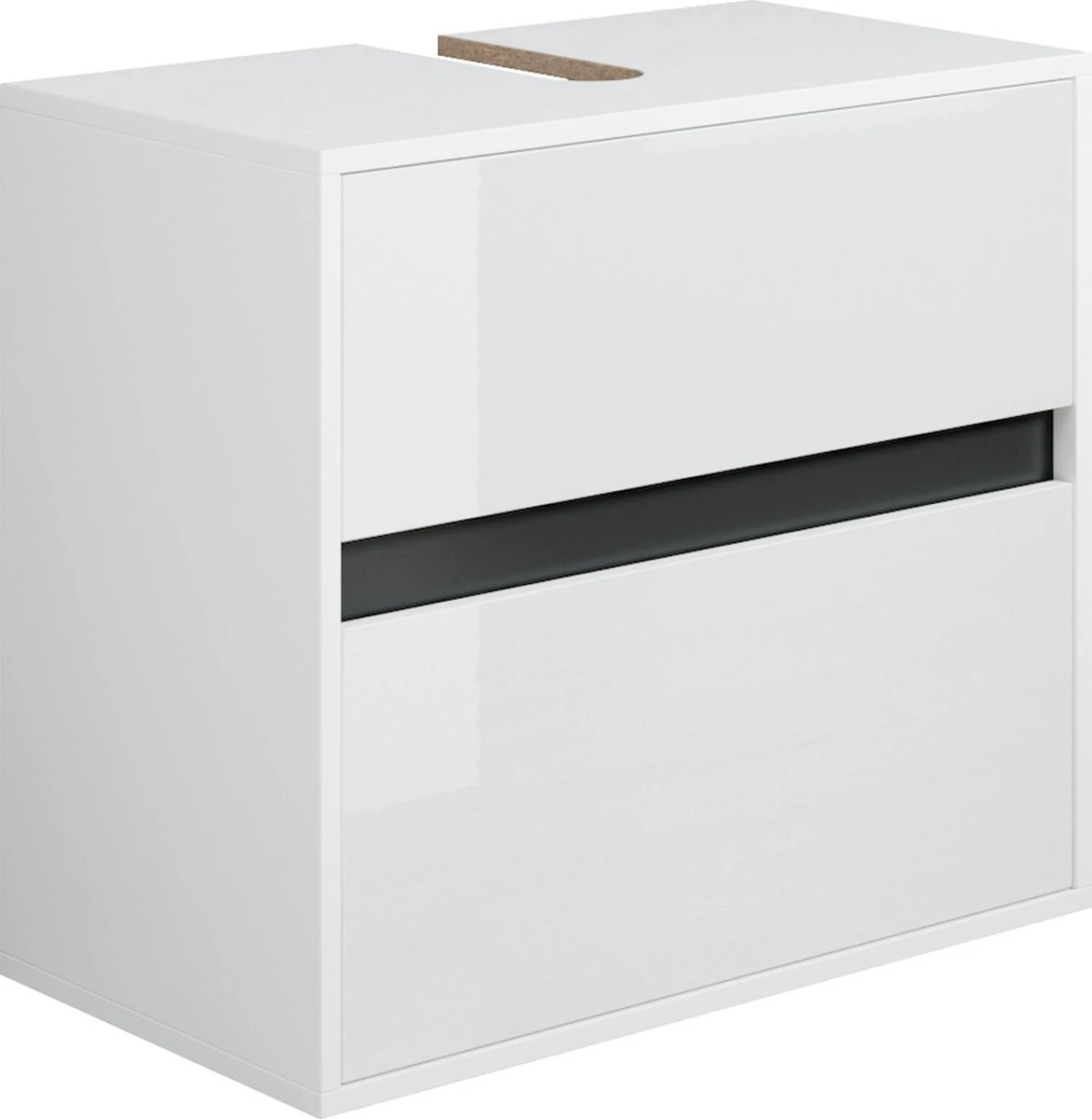 Wastafelkast Stockholm uitgevoerd met een lade. Staande badkamerkast om te plaatsen onder een hangende wastafel. Afmetingen: 670 x 360 x 530mm, uitgevoerd in de kleur hoogglans wit.