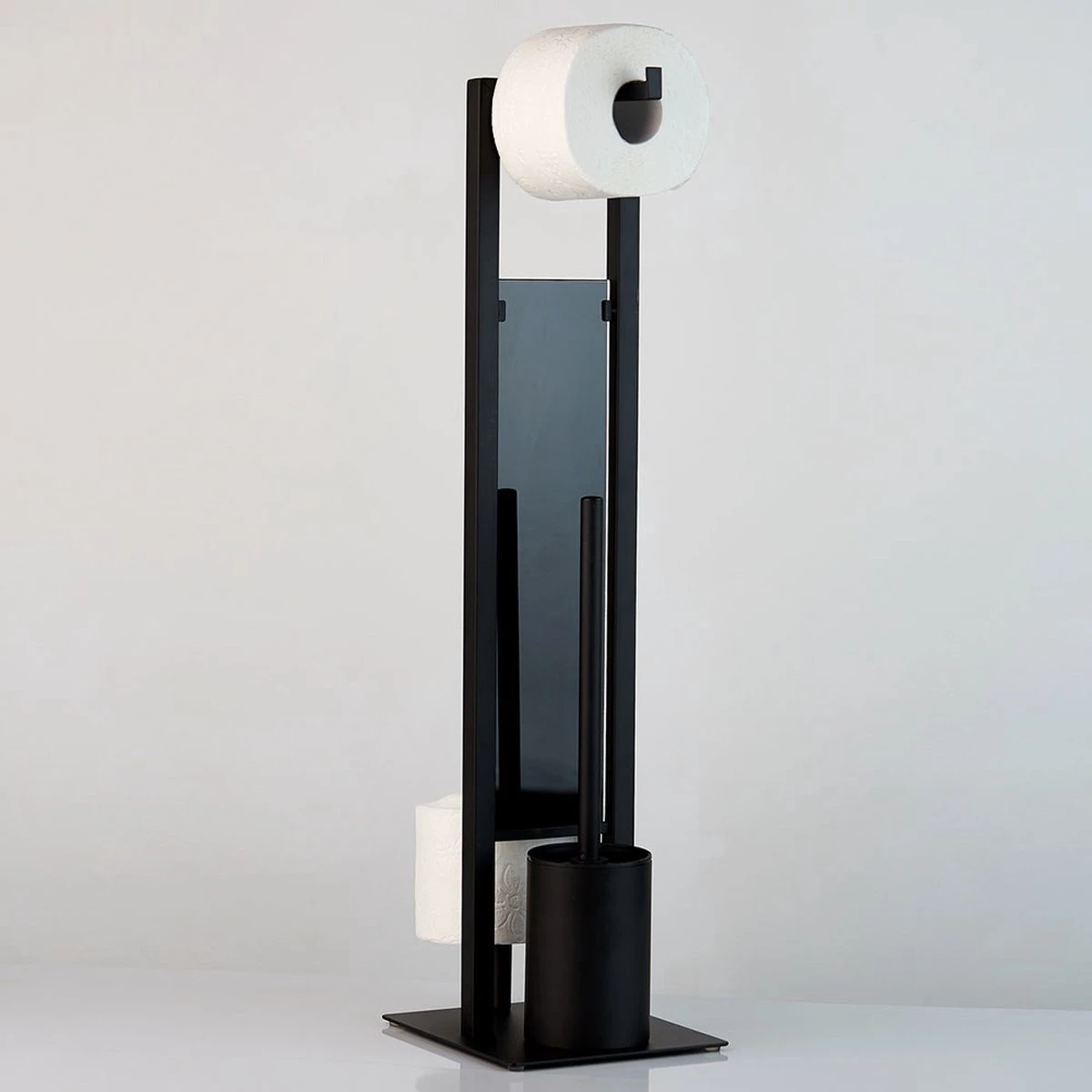 WENKO Toiletbutler Rivalta Zwart – Toiletborstel Met Houder, Toiletrolhouder En Reserverolhouder