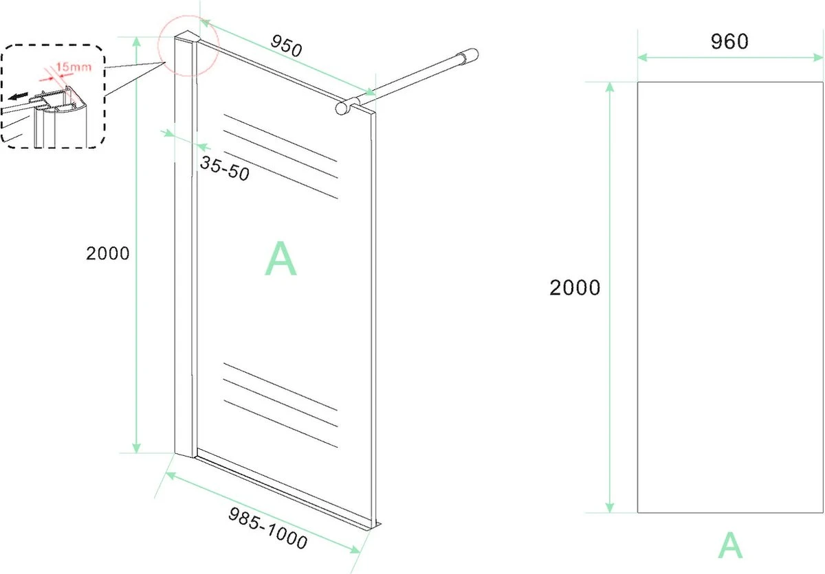 Wiesbaden Eco Inloopdouche + Muurprofiel – 8 Mm Nano – 100 X 200 Cm