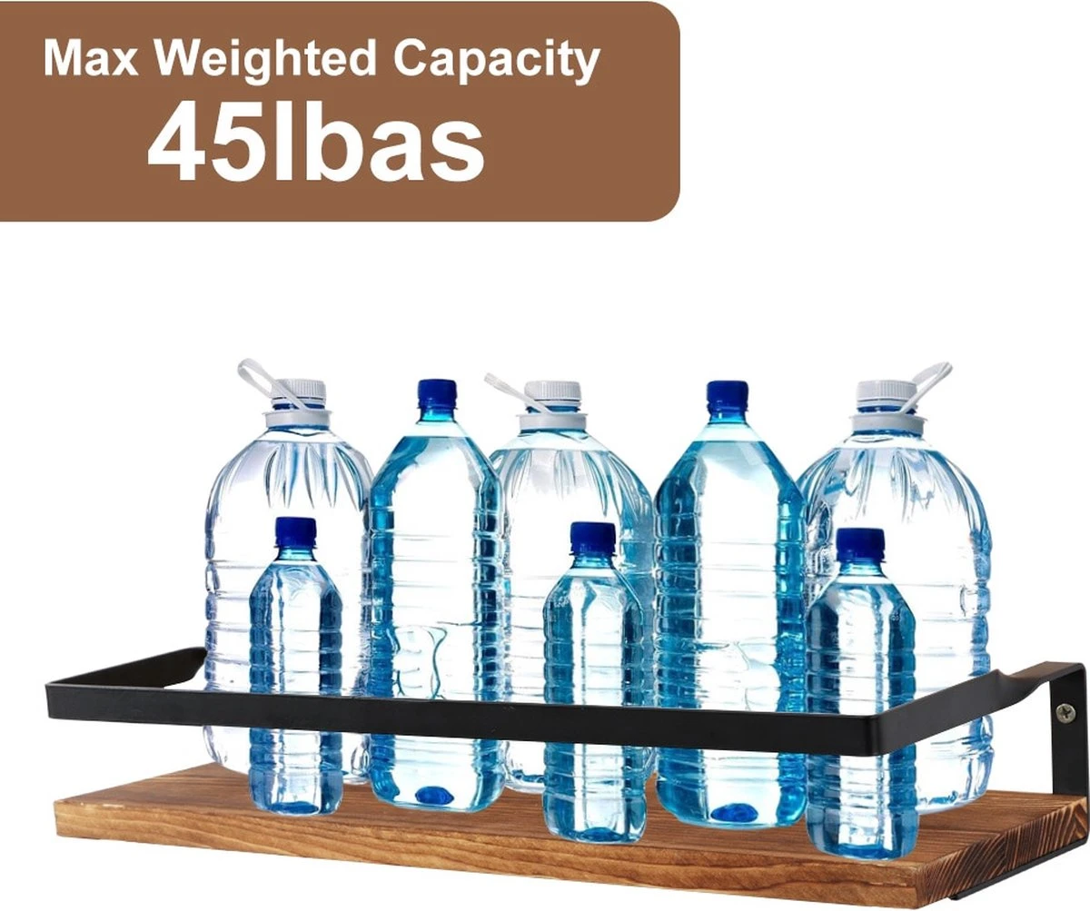 - Premium opbergplanken – Drijvende planken zijn gemaakt van hoogwaardig rustiek hout met vochtbestendig, hittebestendig. De houten planken gebruiken epoxyvernis voor vochtbestendige en schimmelbestendige behandeling na verkoold en gegaste, niet-giftige en onschadelijke, zuurbestendige alkali, gemakkelijk schoon te maken. Ontwerp met metalen structuur met beschermkappen en handdoekhouders, duurzaam, sterk draagvermogen.